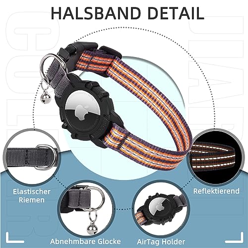 AirTag - Collare catarifrangente per gatti AirTag con campana e supporto AirTag (18-23 cm), arancione)