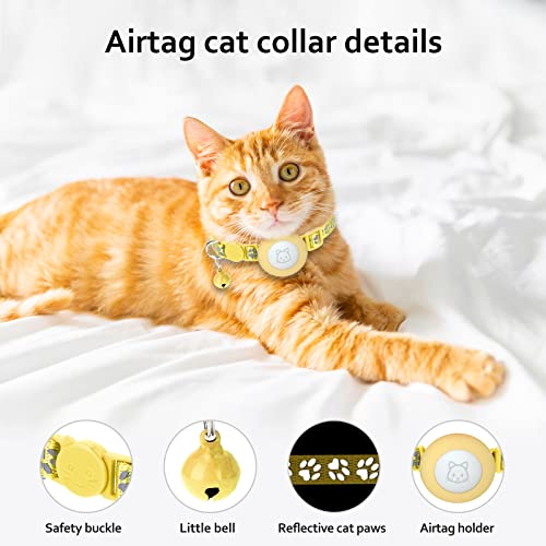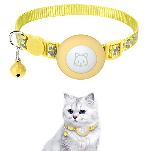 Airtag Collare per gatti Catarifrangente Airtag Collare con Airtag Collare per Gatto Compatibile con Apple Airtag per Bambini, Ragazze, Gatti Cuccioli (Giallo)