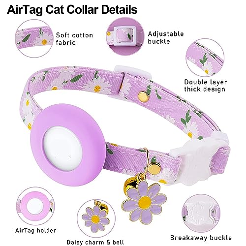 Airtag, collare per gatti con gattino, con supporto in silicone, leggero GPS Tracker per gatti con campane e ciondoli a forma di fiore, per ragazze, ragazzi, gatti piccoli e cuccioli, viola