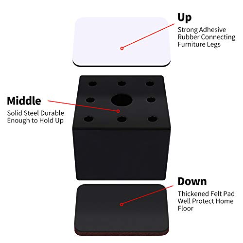 AIRUJIA alzata per mobili da 5 cm, in acciaio al carbonio, diametro 6 cm, autoadesiva, resistente, aggiunge 5 cm di altezza ai letti, divani, armadi, supporta 9 kg (quadrato, nero)