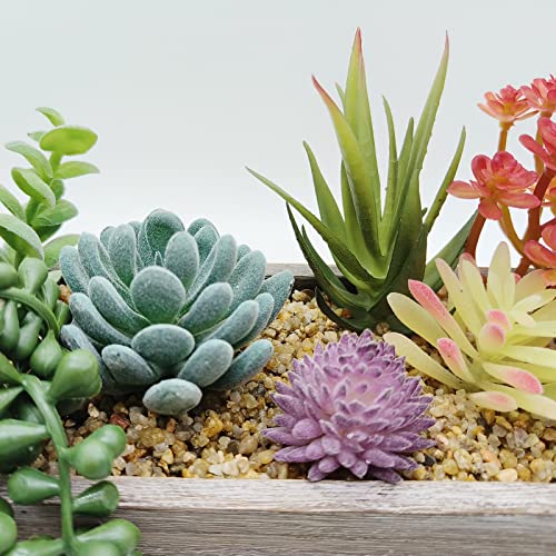 Aisamco 1 pezzo di piante grasse artificiali assortite selezione di piante grasse false in scatola di legno rustico, piante grasse artificiali, in vaso per la decorazione di nozze a casa