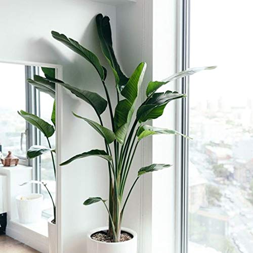 Aisamco Spruzzo di foglie tropicali artificiali Grande Strelitzia Reginae 9 foglie Cespuglio di foglie di palma tropicale artificiale in foglie di paradiso verde uccello alto 82 cm