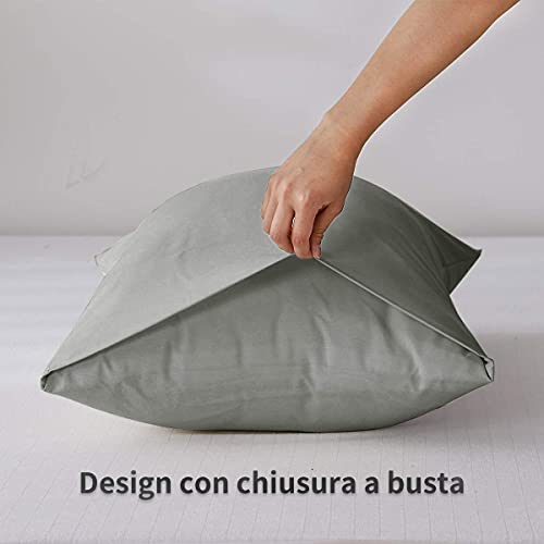 Aisbo Federe Cuscini Letto Grigio - Copricuscini 50x80 cm Tinta Unita Grigia Chiaro in Microfibra 2 Pezzi, Chiusura a Busta