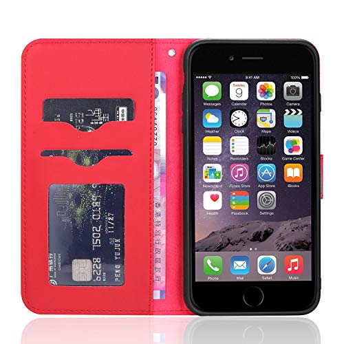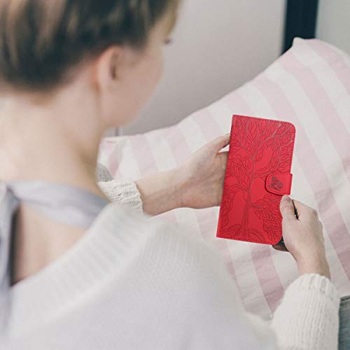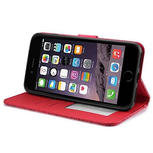 Aisenth Cover per iPhone 6/iPhone 6S, Albero della Vita Modello Custodia in PU Pelle Portafoglio Cover protettiva Tree Design Flip Case con Funzione Supporto, 2 Slot per schede - Rosso