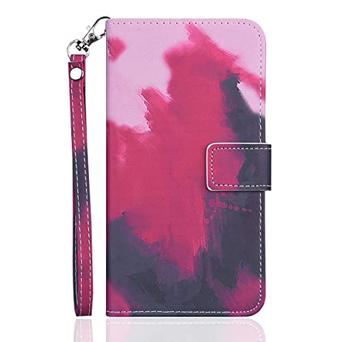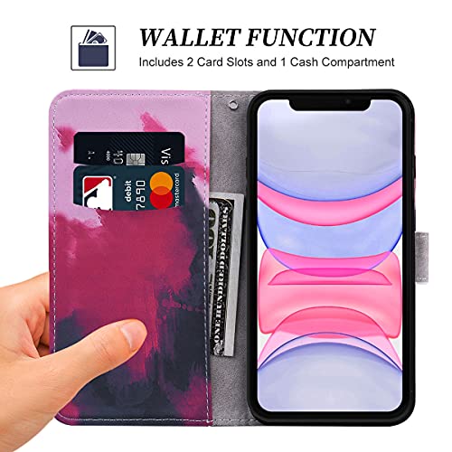 Aisenth Cover per iPhone 11 Pro Max, Acquerello Art Design Custodia in Pelle Portafoglio Graffiti Colorato Flip Case con Funzione Supporto, 2 Slot per schede - Lampone/Nero