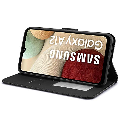 Aisenth Cover per Samsung Galaxy A12, Albero della Vita Modello Custodia in PU Pelle Portafoglio Cover protettiva Tree Design Flip Case con Funzione Supporto, 2 Slot per schede - Nero
