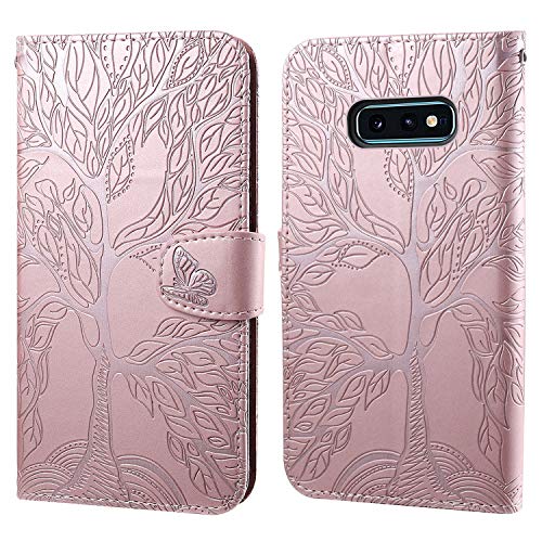 Aisenth Cover per Samsung Galaxy S10E, Albero della Vita Modello Custodia in PU Pelle Portafoglio Cover protettiva Tree Design Flip Case con Funzione Supporto, 2 Slot per schede - Rosa