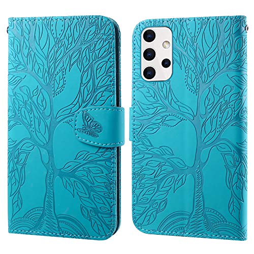 Aisenth Cover per Samsung Galaxy A52 5G, Albero della Vita Modello Custodia in PU Pelle Portafoglio Cover protettiva Tree Design Flip Case con Funzione Supporto, 2 Slot per schede - Blu verde