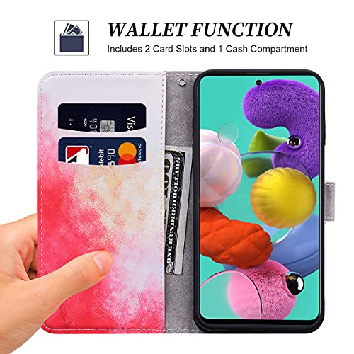 Aisenth Cover per Samsung Galaxy A51 (SM-A515F), Acquerello Art Design Custodia in Pelle Portafoglio Graffiti Colorato Flip Case con Funzione Supporto, 2 Slot per schede - Bianco/Rosa