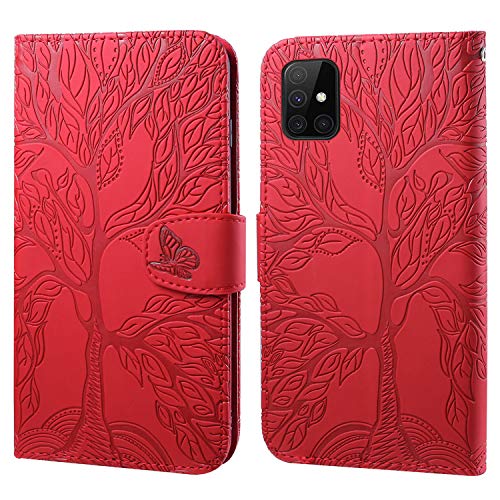 Aisenth Cover per Samsung Galaxy A71 SM-A715F, Albero della Vita Modello Custodia in PU Pelle Portafoglio Cover protettiva Tree Design Flip Case con Funzione Supporto, 2 Slot per schede - Rosso