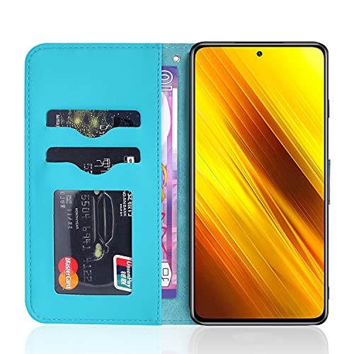 Aisenth Cover per Xiaomi Redmi Note 9 Pro, Albero della Vita Modello Custodia in PU Pelle Portafoglio Cover protettiva Tree Design Flip Case con Funzione Supporto, 2 Slot per schede - Blu verde