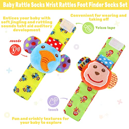 AISIPRIN Sonaglio Neonato,Calzini Sonaglio Neonato per Bambini,Calzini da Polso Sonagli Animaletti Developmental Soft Toys per Neonati 0-12 Mesi Bambini