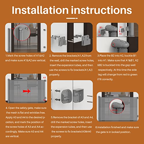 AISIR Cancelletto di Sicurezza,Cancelletto per Bambini,0-250 cm Cancello Barriera Sicurezza Griglia Espandibile per Porte,83cm alto,Dotato di 2 insiemi di accessori di installazione,Grigio