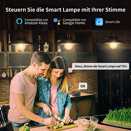 Controllo vocale: facile controllo vocale di tutte le lampade smart grazie all'integrazione con Amazon Alexa o Google Home, tra cui accensione/spegnimento o dimmeraggio/luminosità (lingua italiana non garantita). Ad esempio si può dire: "Alexa, dimmera la lampadina smart al 50%”. Non è necessario alcun hub o bridge.