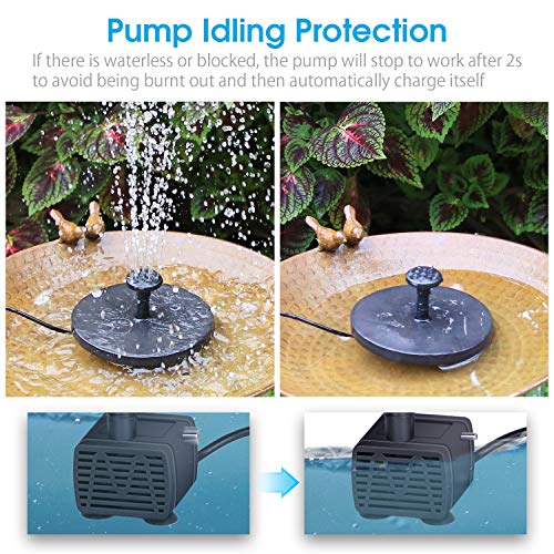 【Multi-applicazione】:Questa pompa solare è perfetta per il bagno degli uccelli, il serbatoio per i pesci, il laghetto, la piscina, il giardino, la circolazione dell'acqua per l'ossigeno. Il tuo giardino catturerebbe sicuramente tutta l'attenzione dei passanti. Lascia che il tuo giardino sia decorato in modo così divertente dalla pompa ad acqua solare.