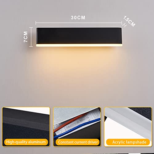 Aiskdan Applique LED da Parete Interno, Lampada Girevole a 360°, 7W Applique In Metallo Acrilico, Nera Per Camera da Letto, Soggiorno, Scala, 31cm, Luce Calda 3500K