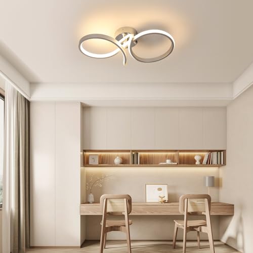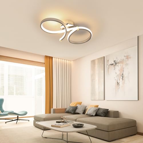 Aiskdan Plafoniera LED Soffitto, Lampada LED Soffitto Curva Design 28W 3150LM, Argento Moderna Plafoniera Camera da Letto Bianco Caldo 3000K per Soggiorno Cucina Sala da Pranzo Corridoio, Dia 40cm