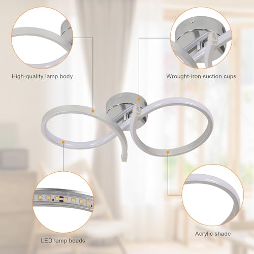 ⭐[Design innovativo] - L'aspetto argentato rende questa plafoniera piena di modernità e arte, a differenza del tradizionale design rotondo o quadrato, il design curvo a figura di 8 la rende facile da inserire in una varietà di stili di casa e migliorare la qualità della vostra casa.