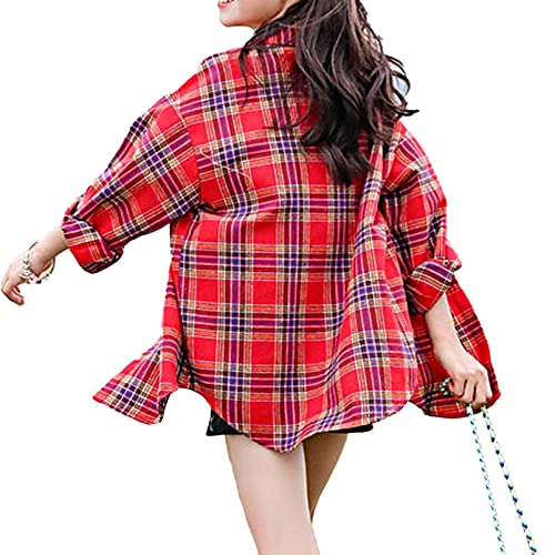 Aislor Camicia a Quadri Bambina Camicetta a Maniche Lunghe T-Shirt Casual Ragazza Camicie Abbottonate Autunno Blusa Classico Ragazze Top Estate con Tasche Primavera Rosso 7-8 Anni