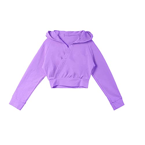 Aislor Felpa con Cappuccio Bambina Crop Top da Danza Moderna Ballo di Strada Hip Hop Ragazza Felpe Sportive Allenamento Fitness Jogging Corsa Maglietta a Maniche Lunghe Viola 15-16 anni