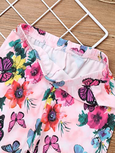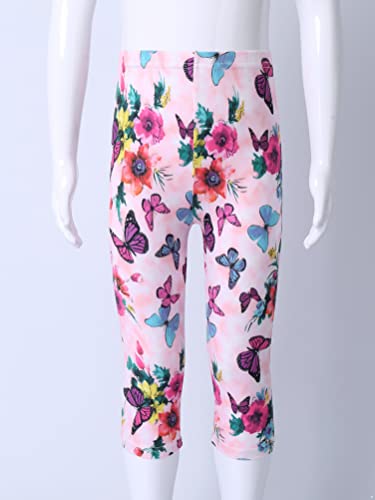 Aislor Leggins Stretch Bambina Lunghezza 3/4 Capri Pantaloni Elasticizzati Bambine Pantaloni Lunghi Sportivi Jogging Corsa Allenamente Ragazze Tuta Pantalone Casual Farfalla&Rosa 3-4 Anni