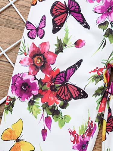 Aislor Leggins Stretch Bambina Lunghezza 3/4 Capri Pantaloni Elasticizzati Bambine Pantaloni Lunghi Sportivi Jogging Corsa Allenamente Ragazze Tuta Pantalone Casual Farfalla&Bianco 3-4 Anni