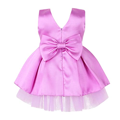 Aislor Vestito Battesimo Principessa Neonata Vestiti Eleganti Cerimonia Nuziale Bimba Tutu Abito Estivo a Maniche Corte Bambina Abiti con Stampa Floreale Festa Compleanno G Lavanda 18-24 Mesi