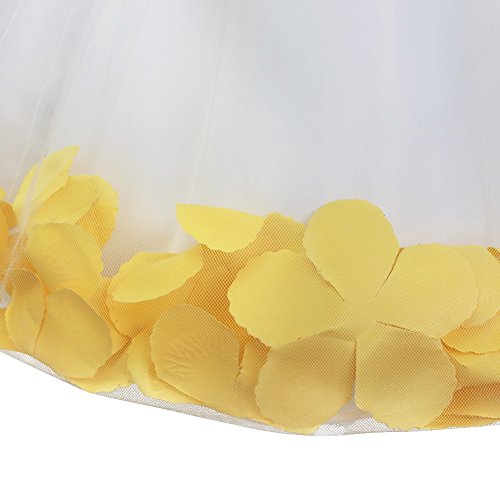 Design Perfetto:Il vestito delle ragazze e' senza maniche, 3D fiore per la decorazione, cerniera nascosta di dietro, O scollo, abiti eleganti per ragazze bambine, e petali di fiori sciolti che fluttuano intorno agli orli della gonna in tulle. Questo rendera' la sua ragazza piu' alla moda, attraente, bella.