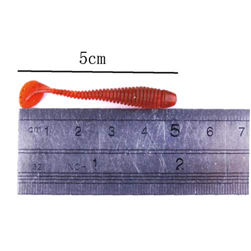 Aisoway 50piece / Pacchetto Morbido di Pesca Worm Soft Esche T-Coda Artificiale Esche Bass Silicone Esche da Pesca