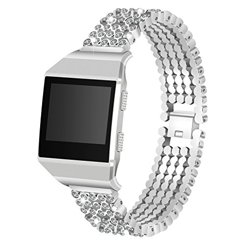 AISPORTS - Cinturino di ricambio per Fitbit Ionic da donna, cinturino in acciaio inox con brillantini e fibbia in metallo per Fitbit Ionic, colore: Argento