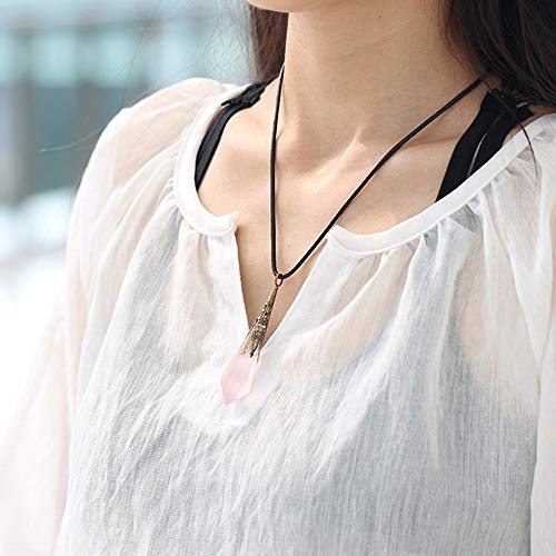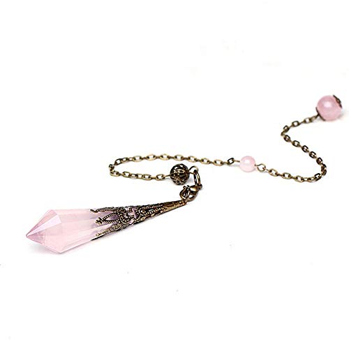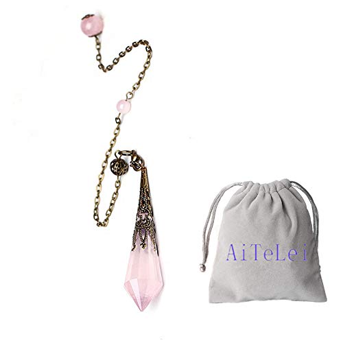 AITELEI Pietra preziosa Naturale Pendolo di Cristallo di Quarzo Rosa 12 Ciondolo di Chakra di guarigione Terapia Facted per rabdomanzia Divinazione Reiki bilanciato con Catena