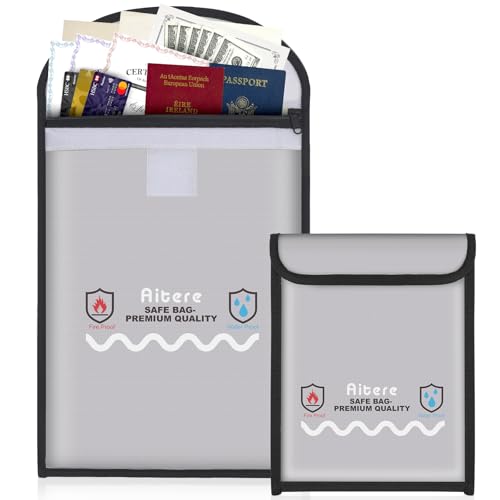 Aitere Set di 2 cartelle portadocumenti ignifughe impermeabili per documenti A4