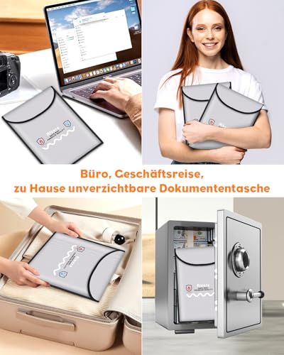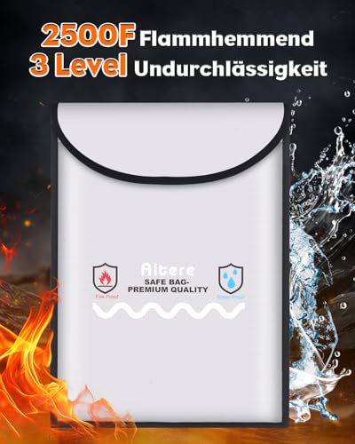 Cartella portadocumenti resistente al fuoco: ci sono 3 strati di protezione in fibra di vetro di alta qualità, chiusura lampo impermeabile al 100%, resistente al fuoco e al calore fino a 1371 °C (2500 ° F). Le nostre borse ignifughe non solo mantengono il fuoco, ma sono anche molto impermeabili. Anche, ideale per qualsiasi motivo per bagnarsi.