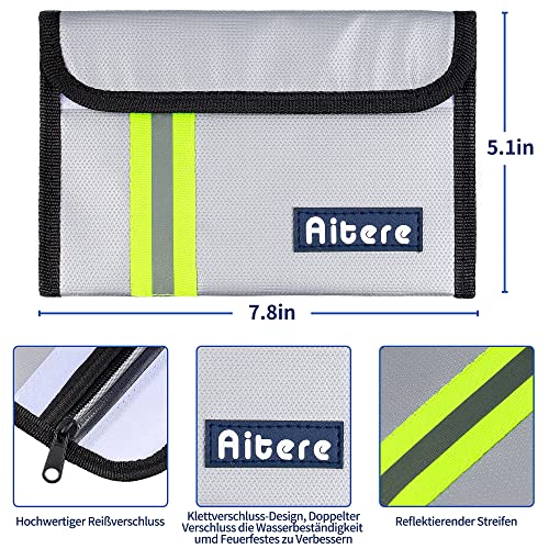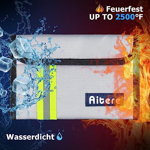 Aitere 2 pezzi borsa ignifuga (20,3 cm x 12,7 cm) piccola borsa resistente al fuoco, borsa di protezione per contanti, in fibra di vetro, impermeabile per fatture, passaporto