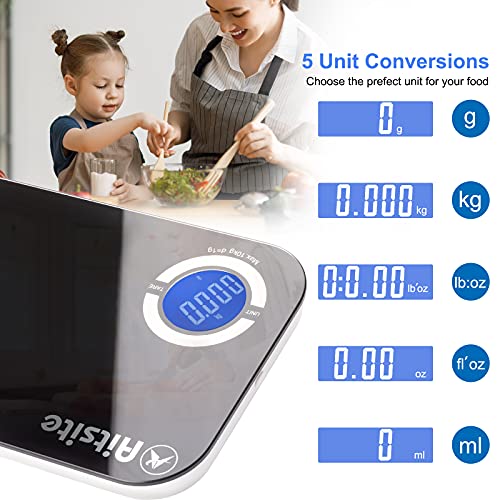 Aitsite Bilancia da Cucina Bluetooth 10Kg/1g Bilancia Smart Digital con Funzione di Tara Bilancia con Display LCD e USB Ricaricaz Bilancia con Visualizzazione Calorie