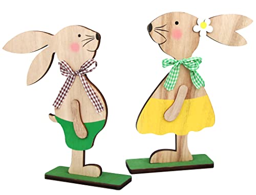 Imballaggio affidabile: il set di coniglietti in legno di Pasqua include 2 coniglietti (dimensioni: 15 * 3,8 * 19 cm).