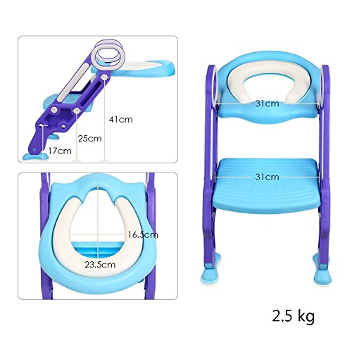 Aitsite sedile vasino riduttore WC per Bambini con Scaletta Vasino con Cuscino Kit Toilette Trainer Step Cervo Sika