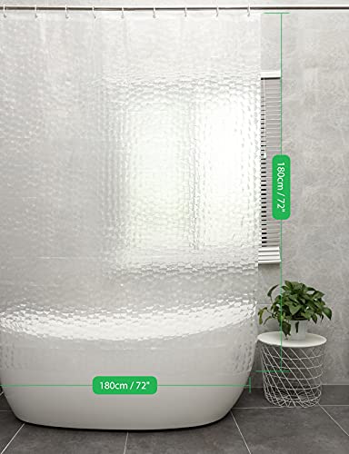 Accessori di Qualità: La tenda doccia trasparente è dotata di 12 ganci di fissaggio in plastica dura per poterla appendere al tubo della doccia. La parte superiore è rinforzata con anelli in metallo antiruggine.