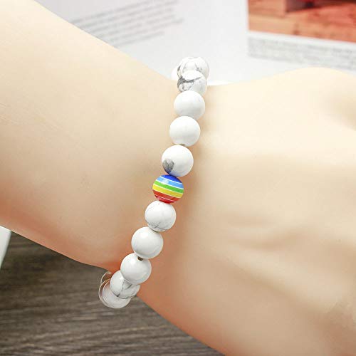 AIUIN Bracciale Arcobaleno con i 7 Chakra, Perle da 8 Mm con Decorazioni in Acciaio Inox, da Uomo, in Pelle
