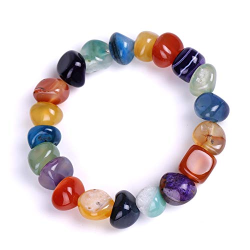 AIUIN - Braccialetto da donna con pietre irregolari multicolori corrispondenti ai 7 chakra e placcato_argento, colore: Stile 1, cod. VN202359