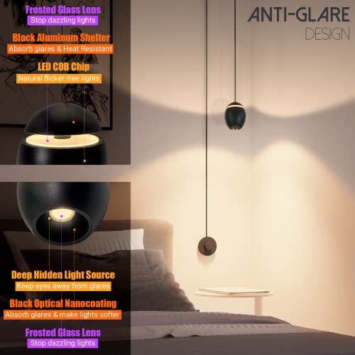 Aivond Lampada a Sospensione a LED Nero Ø8cm per Camera da Letto Comodini Soffitto Cucina Sala da Pranzo, Modern Alluminio Metallo Antiriflesso, 7W 3000K Altezza 2,5m Regolabile