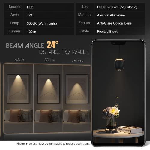 【Chip LED COB】 In sostituzione delle tradizionali lampadine, è presente un chip LED COB high-tech da 7W/3000K all'interno dei mini pendenti. Non è solo per un look elegante, ma anche privo di sfarfallio ed energico per avere basse emissioni UV per uno stile di vita più verde.