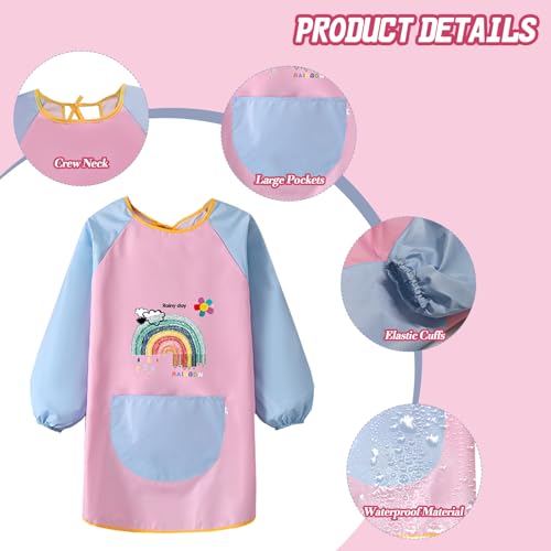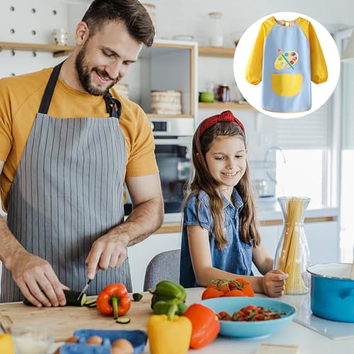 【Pratico Grembiule da Pittura per Bambini】: Il grembiule da pittura per bambini a manica lunga è ideale per i bambini che dipingono, scrivono, impastano, cucinano e fanno artigianato per evitare di macchiare i vestiti con colori e vernici, risparmiano anche tempo quando si lavano e possono anche essere usati come grembiuli da pittura per mangiare.