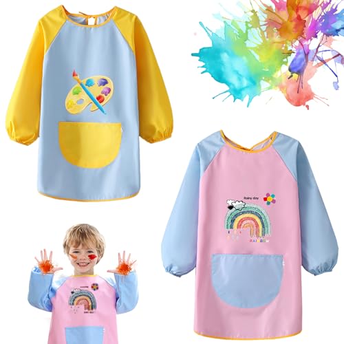AIVORO 2 Pezzi Grembiule Pittura Bambini, Grembiule Impermeabile Bambini, Grembiule a Maniche Lunghe Bambini, Grembiule Pittura Bambini 6-12 Anni, Grembiule Pittura Bambini Colore per Pittura Cucina