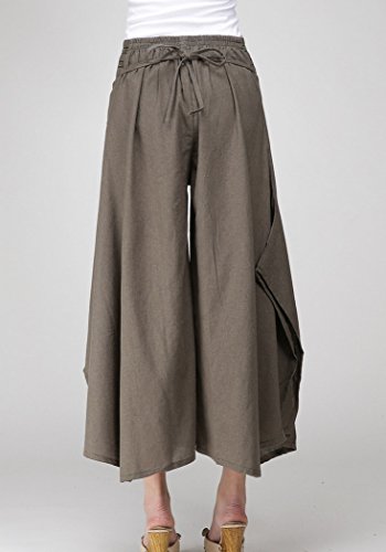 Aivtalk Donna Elegante di Cotone Lino Vita Alta 7/8 Ampio Gamba Pantaloni Palazzo Asimmetrico Elastico in Vita