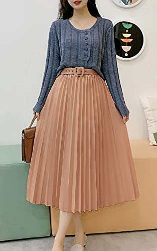Aivtalk Gonna a Pieghe da Donna Abiti Gonna Lunga Gonna a Pieghe Pieghe Maxi Vita Alta Elastica A-Line Pieghettato Gonna a Pieghe Cachi