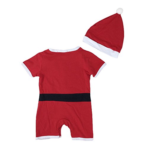 Aivtalk-Pigiama e berretto per bambini, unisex, foderato con pomello, Cintura in cotone, insieme a maniche corte-Tutina Natale carino Pèrè invernale, Rosso, (3-15mois 80-95 cm)