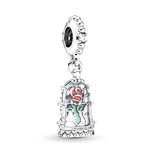 Aiwedanisnting Donna Ciondolo La Bella e la Bestia Incantata Rosa Pendente Argento 925 Colgantes con Zirconia cubica per Charm Bracciale