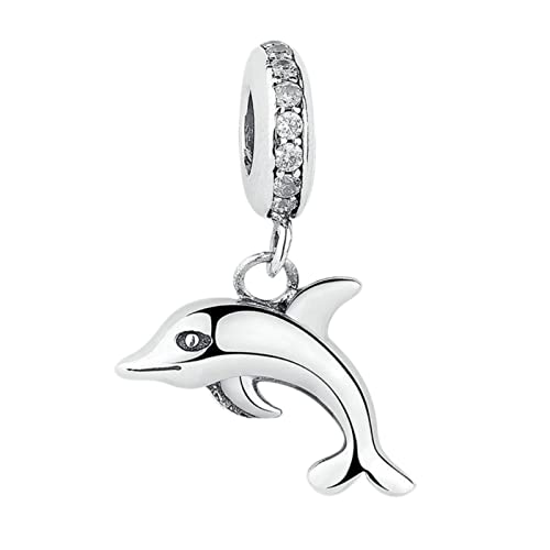 Aiwedanisnting Donna Ciondolo delfino penzolante Argento 925 Colgantes con Zirconia cubica per Charm Bracciale