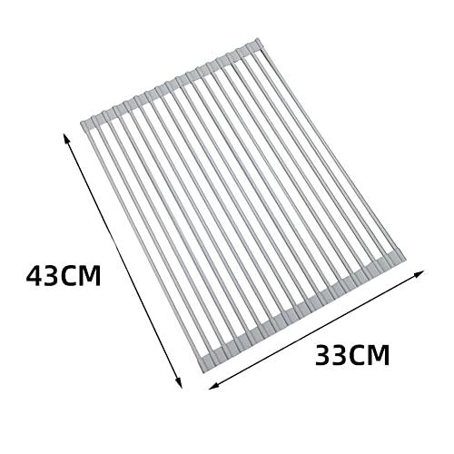 Aiweijia Scolapiatti da Appoggio per Lavello Pieghevole -Ripiano in Silicone Arrotolabile e Pieghevole - Rastrelliera scolapiatti avvolgibile per Il lavello-(Grigio-43 * 33cm)